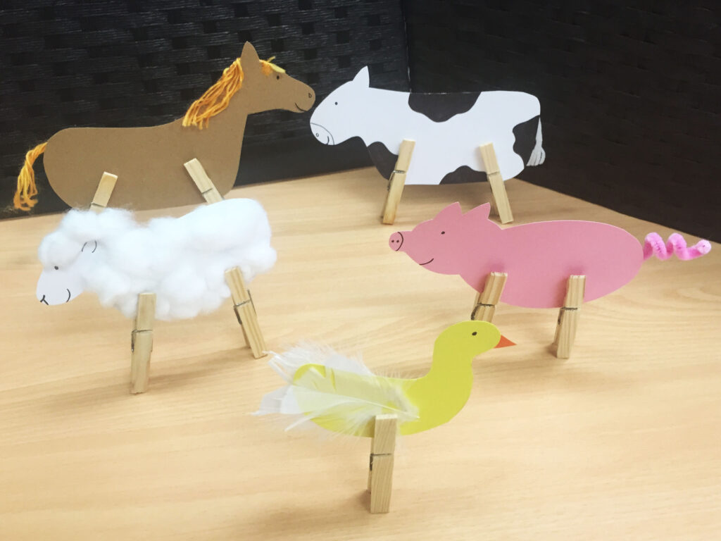 Make some farm animals using cardboard and wooden clothes pegs…